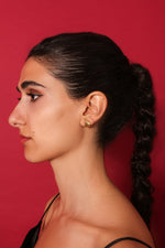 A sculptural statement, the earrings trace the ear with fluid, architectural curves that are bold in form yet minimal in expression. Designed with precision, they follow the ear’s natural contour to create a refined, directional silhouette.