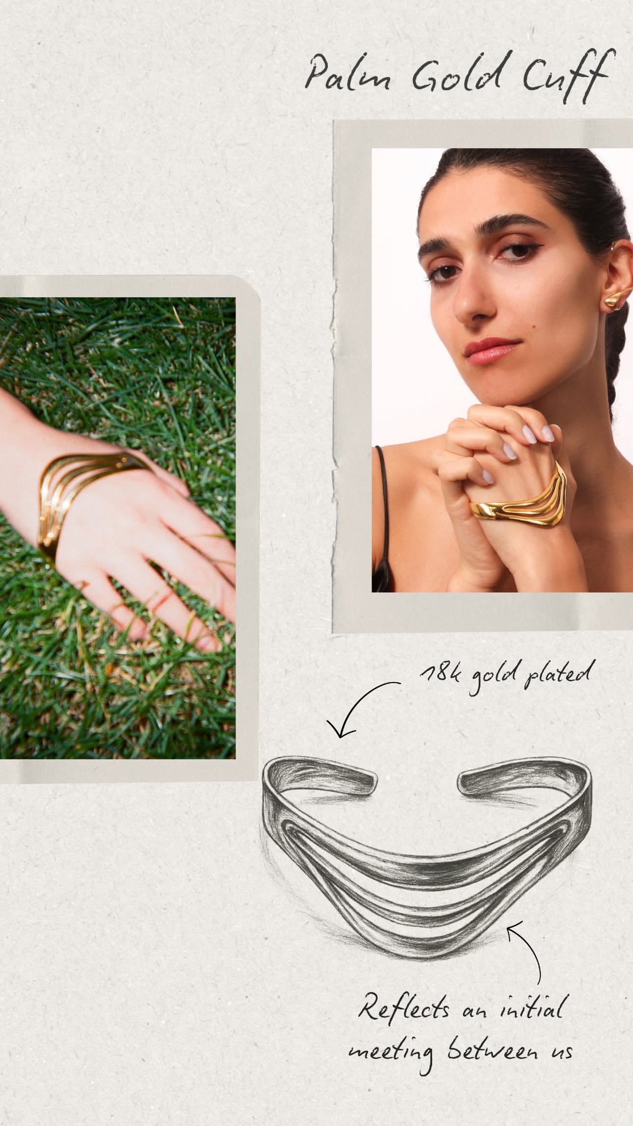 These pieces are designed as an initial greeting between us. Just as a handshake marks the first human interaction, the designs symbolically greet you, wrapping around your palm and then evolving into two distinct forms, one embracing the wrist and the other the thumb, as our connection deepens and comfort grows.